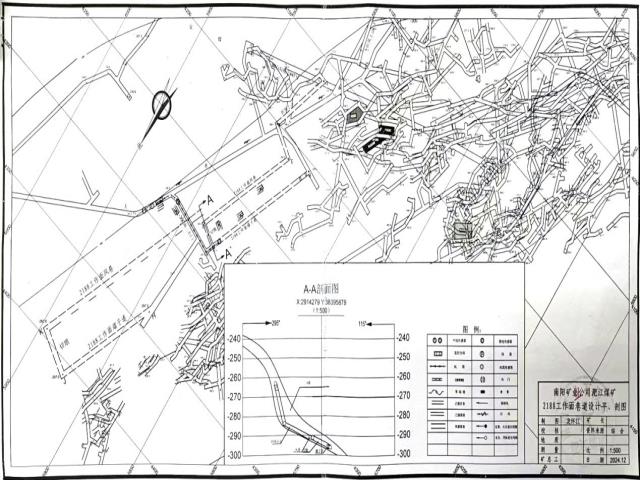 淝江煤矿于2024年12月28日向耒阳市应急管理局南阳监管大队提交《淝江煤矿关于2188工作面开工备案的报告》。2025年1月开始在-300m南三石门向北施工2188运输巷,掘至70m后,施工一上山,与沿煤运输巷同时掘进。沿煤运输巷掘至130m后,开门掘二上山。一上山掘进64m(标高-266.7m)后,煤层变薄,往北沿煤掘1斜巷,平均坡度22°,于8月下旬贯穿二上山。贯穿后,在1斜巷往下6m掘2斜巷,平均坡度21°,于9月下旬贯穿二上山。再从2斜巷往下10m掘3斜巷,于10月5日开门,至10月9日晚班,已掘21架棚,约14m。一上山、2斜巷、3斜巷均采用木支护梯形棚,巷道最矮处高度仅0.5m。