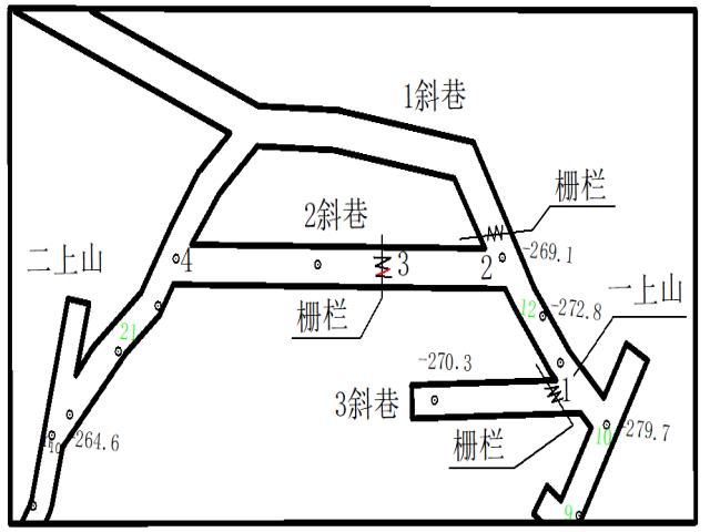 图2:-300m南三石门2188运输巷一上山设置栅栏情况