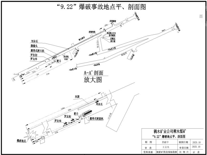 3.技术措施审批及贯彻学习情况。2025年4月,掘进技术员邹剀切修编了《+300m暗主井延深掘进作业规程》,稠木煤矿矿长、原总工程师、安全副矿长、生产副矿长、机运副矿长对该作业规程进行了会审,煤矿组织对该规程进行学习,事故当班作业人员参加培训并考试合格。