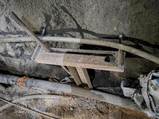 井筒巷道宽2.8m,高2.5m,铺设了22kg/m型钢轨,轨距600mm,距离右帮1.1m,车道距离左帮1.1m。8月1号开始按技改设计进行锚喷支护,10月底已完成锚喷支护。11月1日开始设置行人踏步和水沟,踏步在右侧,宽0.4m;水沟在左侧,宽0.23~0.26m,深为0.17~0.22m。事故前行人踏步和水沟已完成280m。