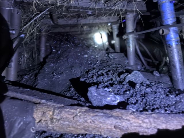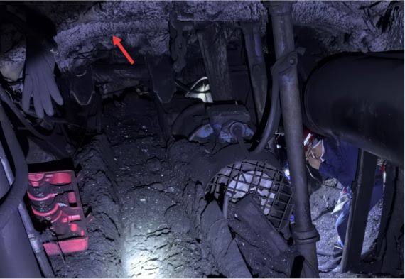 图3:事故后2167A切眼掘进工作面迎头煤炭堆积情况